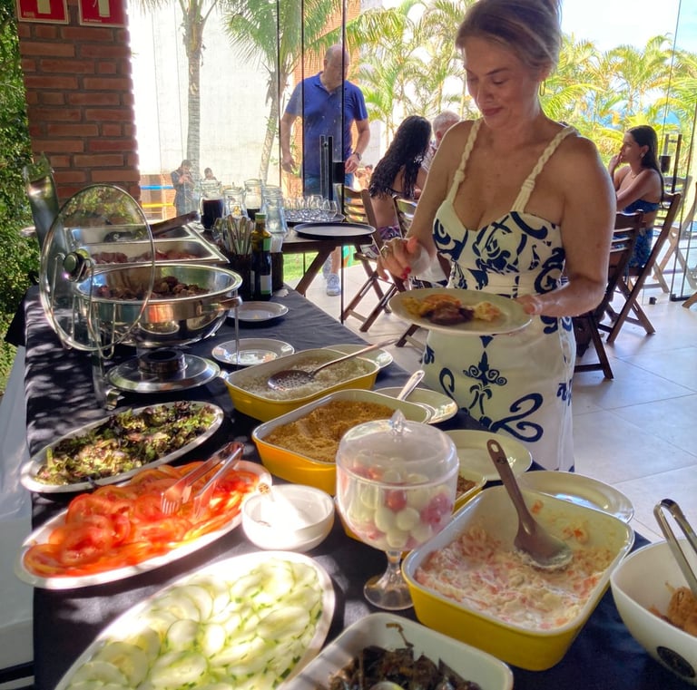 Perfeito para aniversários, reuniões familiares ou amigos. Nós levamos tudo: carnes selecionadas, acompanhamentos, grelha, utensílios e equipe para você só aproveitar o momento.